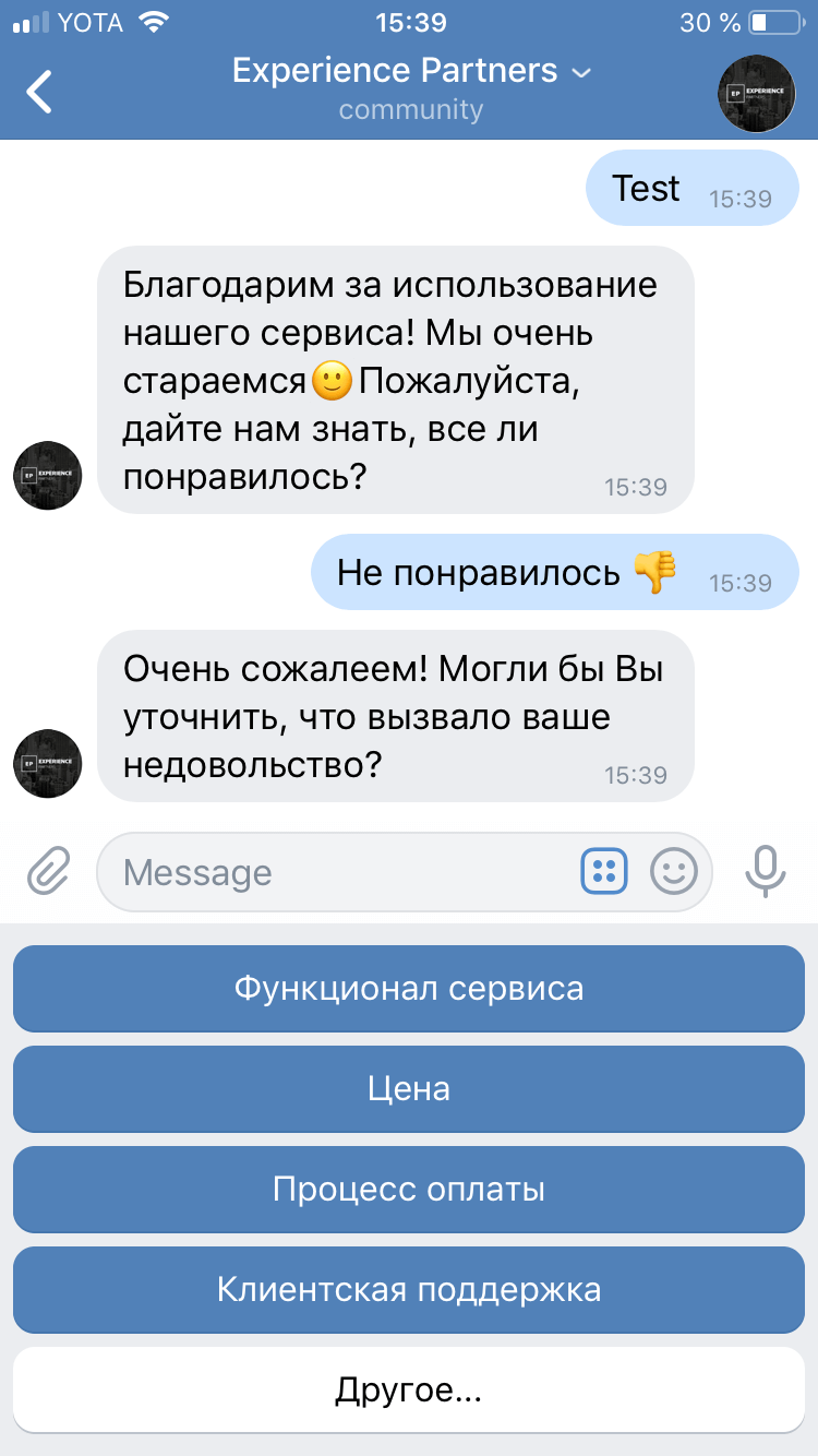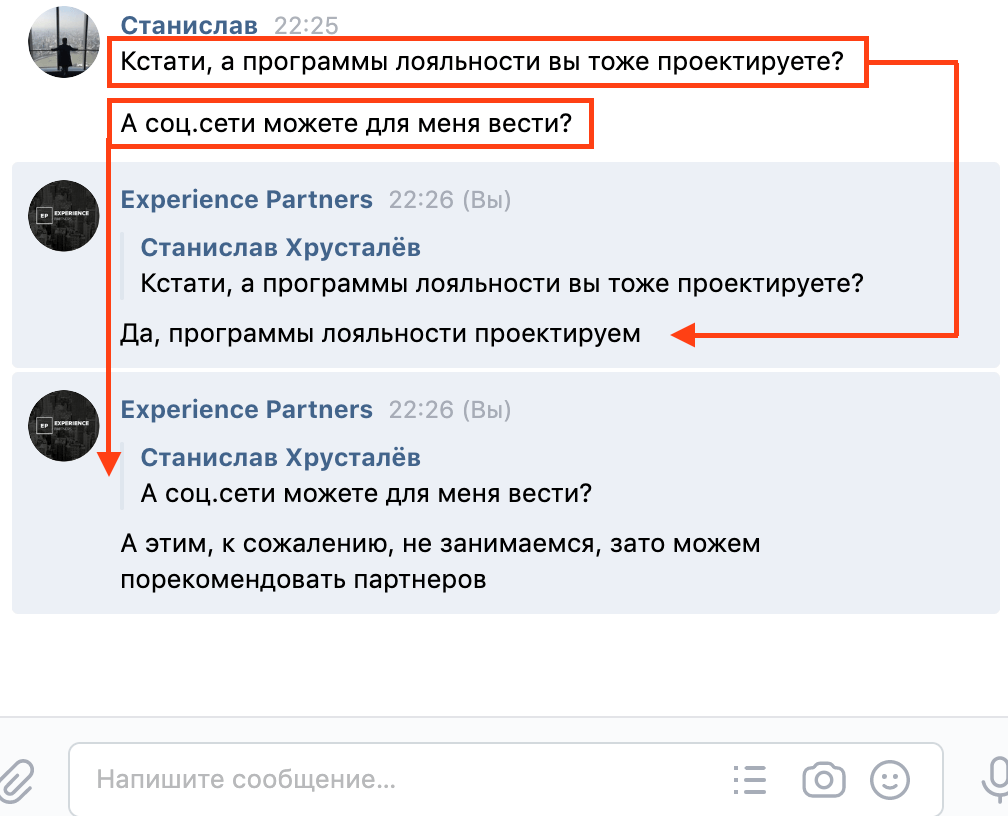 Так как индикатор скорости ответа фиксирует лишь ваше первое ответное сообщение, старайтесь отправить его как можно быстрее. Например, еще до основного ответа, сразу после получения сообщения отправить что-то типа «Станислав, добрый день! Мы получили Ваше сообщение, обязательно ответим в течение 10 минут!», закончить обработку предыдущих запросов и вернуться к клиенту. Таким образом, и клиент поймет, что его сообщением сейчас займутся, а индикатор скорости ответа посчитает, что он был получен оперативно. Кроме того, т.к. во всех соц.сетях и мессенджерах теперь видно, что собеседник прочитал ваше сообщение, нельзя просто ознакомиться со входящим запросом и начать думать – ведь в этом случае на другой стороне клиент увидит, что его сообщение прочитали, но не отвечают