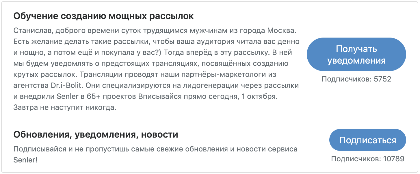 20%, рассылки в социальных сетях и мессенджерах открывают более половины получателей. Поэтому, если у вас есть база подписчиков ВКонтакте, грех не воспользоваться таким инструментом.